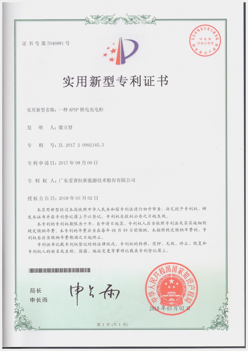 | 發(fā)證機(jī)構(gòu): | 中國(guó)人民共和國(guó)知識(shí)產(chǎn)權(quán)局局 | 發(fā)證時(shí)間 : | 2017-08-09 |