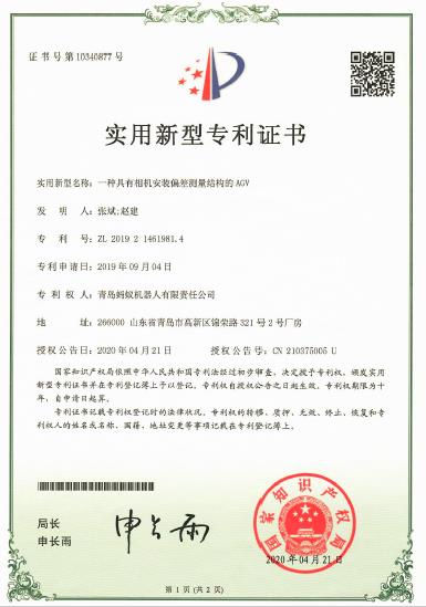 發證機構:   國家知識產權局 發證時間 :   2020-04-21