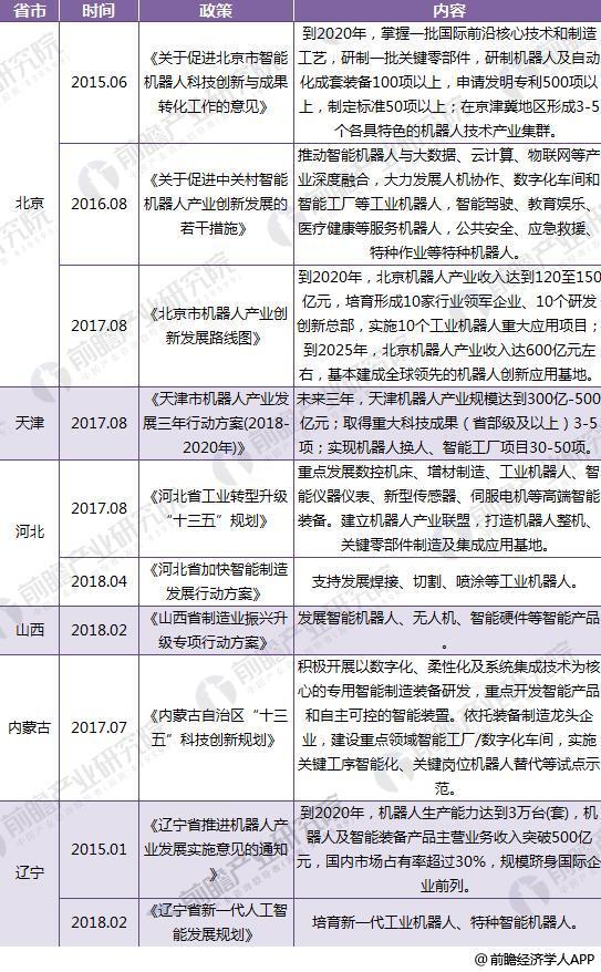 國家政策先行,地方政策迅速跟進:2016年以來,我國各省市圍繞“機器人”發(fā)布了多項產(chǎn)業(yè)促進政策,尤其是北京、天津、遼寧、上海、浙江等10個省市出臺了機器人相關(guān)的產(chǎn)業(yè)規(guī)劃。