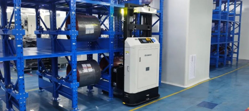 據(jù)了解,在涂布分切的前段卷料環(huán)節(jié),又包括上設(shè)備與上緩存庫兩個(gè)方面。電池生產(chǎn)節(jié)拍緊湊,設(shè)備對(duì)接精度高,創(chuàng)智針對(duì)這個(gè)環(huán)節(jié)深度定制研發(fā)了舉升式與叉臂式兩款A(yù)GV產(chǎn)品。叉臂式AGV相當(dāng)于堆高叉車的懸臂,能夠?qū)崿F(xiàn)上設(shè)備及緩存庫的高精度全自動(dòng)對(duì)接。