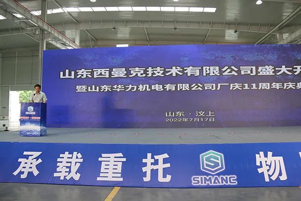 山東華力機電有限公司董事長郭永旭先生發表致辭,對出席慶典的各位嘉賓表示熱烈的歡迎。郭董提到,山東西曼克技術有限公司在高書記、李縣長等縣直各部的大力支持下終于在今天建成開業投產,該項目第一期新建高標準廠房70000平方米,即將開建的第二期工程再建高標準“員工之家”樣式的廠房106000平方米,預計明年的今天建成投產。郭董對華力機電公司從2011年至今的發展與成就進行了總結,他指出,華力機電從銷售收入只有1億元,通過十年的拼搏到20年實現銷售收6. 8億元,產品也在不斷地更新換代,新技術新產品不斷涌現,并且得到了良好的市場應用。郭董表示,隨著西曼克公司的新廠落成開業,有決心有信心更有底氣,把機器人產業做強做大,用優異的成績,來回報各位領導、各位客戶、各位供應商和各位朋友的大力支持。