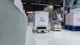 展會現(xiàn)場,所有的AMR機(jī)器人都由同一套調(diào)度管理系統(tǒng)CLOUDIA的指揮,在有限的展臺空間內(nèi)同場運行,相互協(xié)調(diào),協(xié)同作業(yè),實現(xiàn)狹窄空間內(nèi)的異構(gòu)機(jī)器人集群混場調(diào)度應(yīng)用。