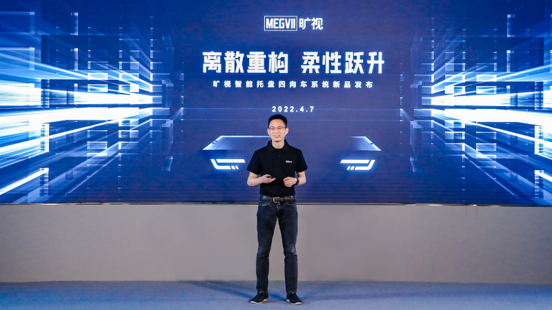 曠視聯(lián)合創(chuàng)始人、物流業(yè)務事業(yè)部產研負責人唐文斌發(fā)布曠視智能托盤四向車系統(tǒng)