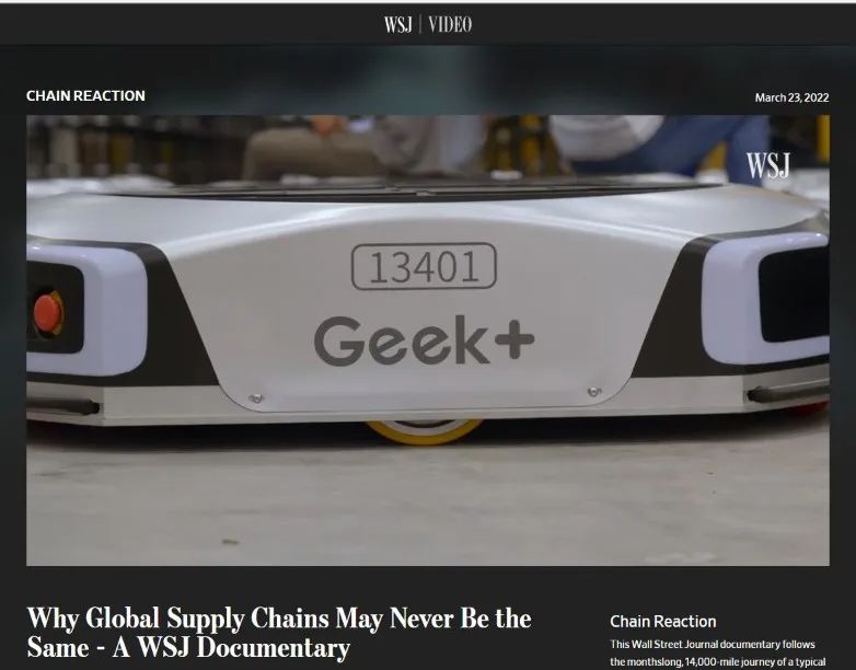 近日,國際著名商業財經媒體The Wall Street Journal (華爾街日報) 聚焦全球供應鏈的復雜世界,推出紀錄片《全球供應鏈為何不復從前》。全球AMR引領者極智嘉(Geek+)驚艷亮相,向全世界展示了AMR機器人如何在全球供應鏈智能化轉型升級中發揮重要作用,助力企業提高供應鏈反脆弱能力,保持市場核心競爭力。