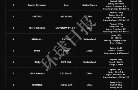 近日,《環球日報》發布世界十大智能機器狗榜單。