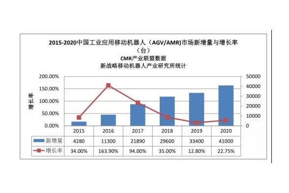 2020年中國(guó)市場(chǎng)AGV/AMR新增量41000臺(tái),市場(chǎng)規(guī)模76.8億元
