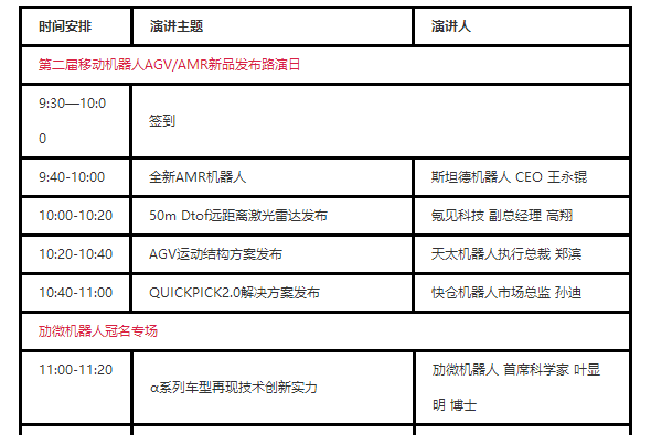 10月27日 第四屆中國國際移動機器人(AGV/AMR)產業發展大會 10月28日 第二屆移動機器人(AGV/AMR)新品發布路演專場 10月2...