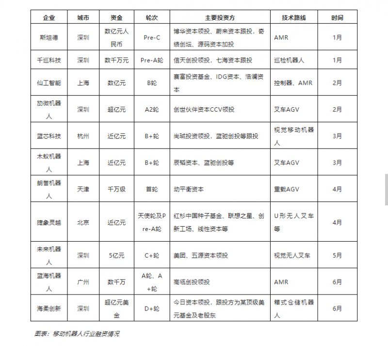 從資金投入來看,大部分企業融資金額都在億元級以上,其中,海柔創新與未來機器人兩家企業在上半年拿到了行業最多的融資。