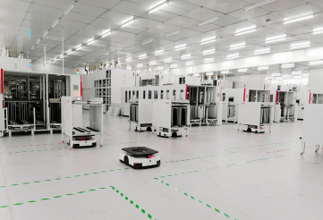 使用AMR配合上層系統,實現整廠從發料機到制絨,制絨到擴散,擴散到激光,激光到蝕刻,蝕刻到退火,退火到背鈍化,背鈍化到背膜,背膜到正膜,正膜到激光開槽的全自動搬運流程。