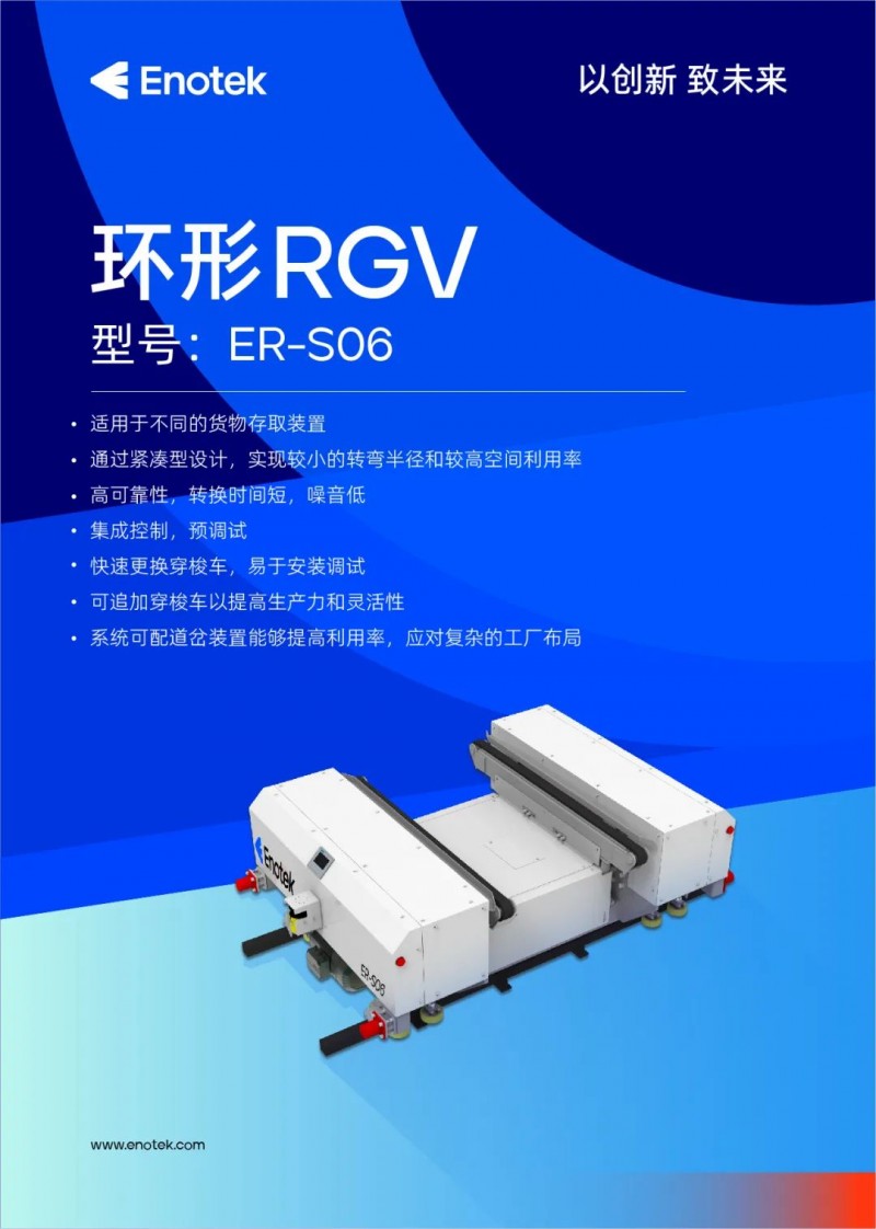 安歌科技Enotek作為一家以創(chuàng)新驅(qū)動(dòng)的全鏈路工業(yè)智能物流解決方案提供商,秉承著“以創(chuàng)新,致未來(lái)”的理念,將創(chuàng)新與智能作為企業(yè)底色,不斷開(kāi)拓進(jìn)取,持續(xù)豐富產(chǎn)品線,為客戶帶來(lái)更多樣化的選擇。繼9月連續(xù)發(fā)布了牽引式AGV EA-Q50、平衡重式AGV EA-D15兩款新品后,最新的環(huán)形RGV ER-S06也于近日正式發(fā)布。