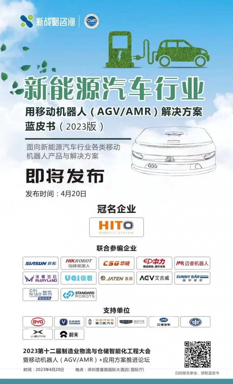 《新能源汽車行業(yè)用移動機器人(AGV/AMR)解決方案藍皮書(2023版)》是CMR產(chǎn)業(yè)聯(lián)盟與新戰(zhàn)略移動機器人產(chǎn)業(yè)研究所聯(lián)合出版的關于新能源汽車行業(yè)工業(yè)移動機器人(AGV/AMR)產(chǎn)品應用現(xiàn)狀、市場痛點、技術路線、主流企業(yè)、發(fā)展趨勢等詳細內參的藍皮書。藍皮書將面向全行業(yè)發(fā)行,重點向新能源汽車本體制造商、集成商、軟件服務商、政府投研等領域發(fā)行。