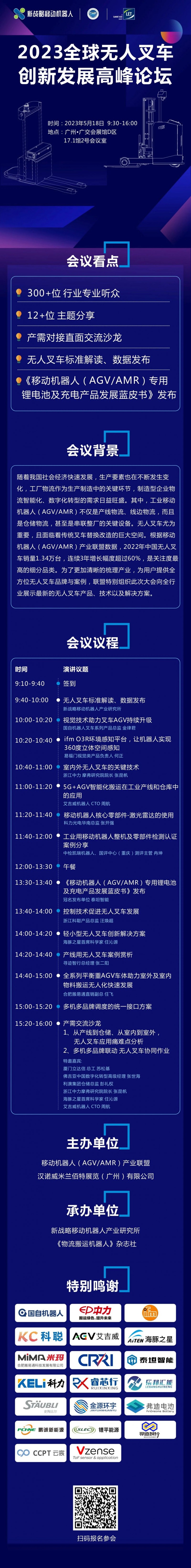 5月18日,為了更好地解讀無(wú)人叉車技術(shù)及市場(chǎng)應(yīng)用現(xiàn)狀,由CMR產(chǎn)業(yè)聯(lián)盟主辦的“2023全球無(wú)人叉車創(chuàng)新發(fā)展高峰論壇”將在廣州重磅開(kāi)啟,會(huì)議上,除14+主題演講外,還將重磅發(fā)布《移動(dòng)機(jī)器人(AGV/AMR)專用鋰電池及充電產(chǎn)品發(fā)展藍(lán)皮書(shū)(2023版)》,敬請(qǐng)期待!