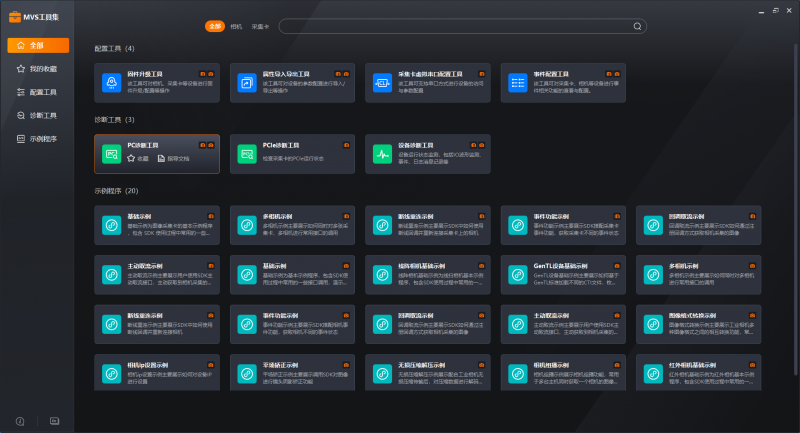 全新推出的MVS工具集軟件提供多達7種常見工具和20種示例程序的合集,方便用戶快速查找。