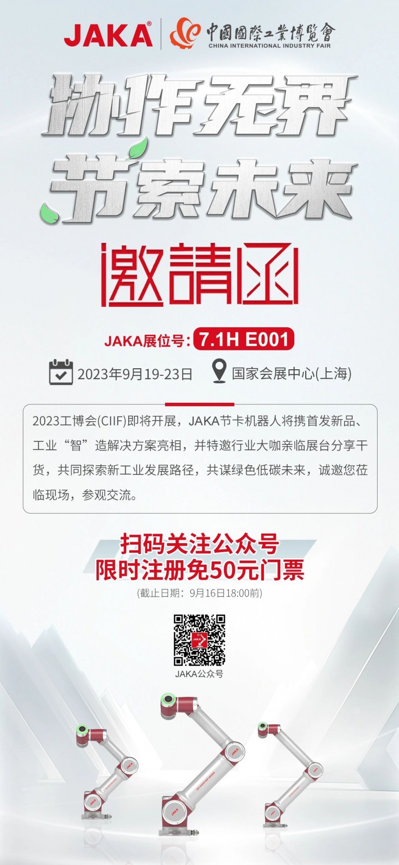 掃描下圖中二維碼,關(guān)注節(jié)卡機器人公眾號,限時注冊還可免50元參展門票。