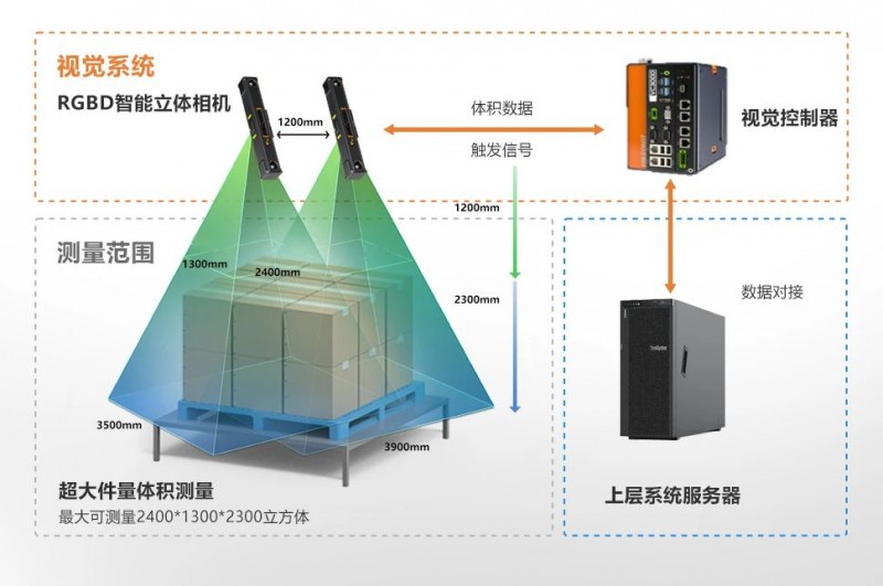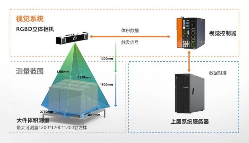 測(cè)量精度:±10mm,針對(duì)倉(cāng)儲(chǔ)物流,碼垛類(lèi)型的超大件物體進(jìn)行體積測(cè)量。