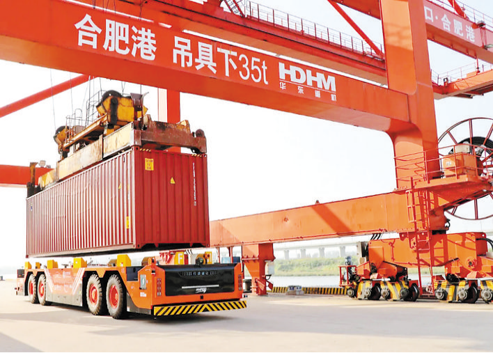 合肥港位于中國安徽省合肥市,地處長江、淮河之間,襟江擁湖,是中國28個內(nèi)河主要港口之一。合肥港目前吞吐能力最大的港區(qū)為南淝河港區(qū),現(xiàn)有58個泊位,其中集裝箱泊位5個,件雜貨泊位13個,危化品泊位6個,通用泊位32個;港區(qū)年吞吐量2490萬噸、集裝箱60萬標(biāo)箱。其中,合肥港綜合碼頭是南淝河港區(qū)最大的件雜貨和集裝箱裝卸碼頭,也是合肥港智能化水平最高的碼頭。配備3臺岸橋全部加裝自動對位系統(tǒng),6臺場橋全部改造為全自動場橋,同時配備了2臺國唐“鴻擎F01”IGV無人駕駛集卡車。2022年,合肥港綜合碼頭集裝箱吞吐量達42萬標(biāo)箱,2023年計劃吞吐量達45萬標(biāo)箱。