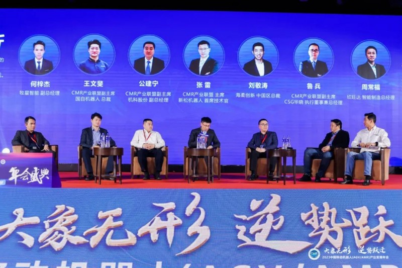 2023年12月13日,在“2023中國移動機(jī)器人(AGV/AMR)產(chǎn)業(yè)發(fā)展年會-AMR新技術(shù)融合專場”的圓桌討論環(huán)節(jié),CMR產(chǎn)業(yè)聯(lián)盟主席、新松機(jī)器人首席技術(shù)官張雷,CMR產(chǎn)業(yè)聯(lián)盟副主席、國自機(jī)器人總裁王文斐,CMR產(chǎn)業(yè)聯(lián)盟副主席、機(jī)科股份副總經(jīng)理公建寧,CMR產(chǎn)業(yè)聯(lián)盟副主席、CSG華曉執(zhí)行董事兼總經(jīng)理魯兵,海柔創(chuàng)新中國區(qū)總裁劉敬濤,牧星智能標(biāo)品事業(yè)部總經(jīng)理何梓杰以及欣旺達(dá)智能制造總經(jīng)理周常福圍繞“制造、物流智能化升級過程中移動機(jī)器人參與的廣度與深度、中國移動機(jī)器人全球化進(jìn)程中的機(jī)會與挑戰(zhàn)、直面行業(yè)弊端,如何理性參與行業(yè)競合”等本年度熱點(diǎn)話題,分享企業(yè)在新業(yè)態(tài)下的發(fā)展思路與成功經(jīng)驗(yàn)。