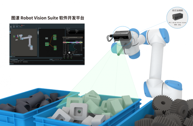 用戶在使用圖漾UR+認(rèn)證相機(jī)時(shí),還可獲得圖漾科技多款機(jī)器人視覺開發(fā)軟件的免費(fèi)授權(quán)、安裝使用、操作培訓(xùn)及技術(shù)支持,在實(shí)際項(xiàng)目中可大幅簡化傳統(tǒng)視覺項(xiàng)目的編程難度及實(shí)施周期。