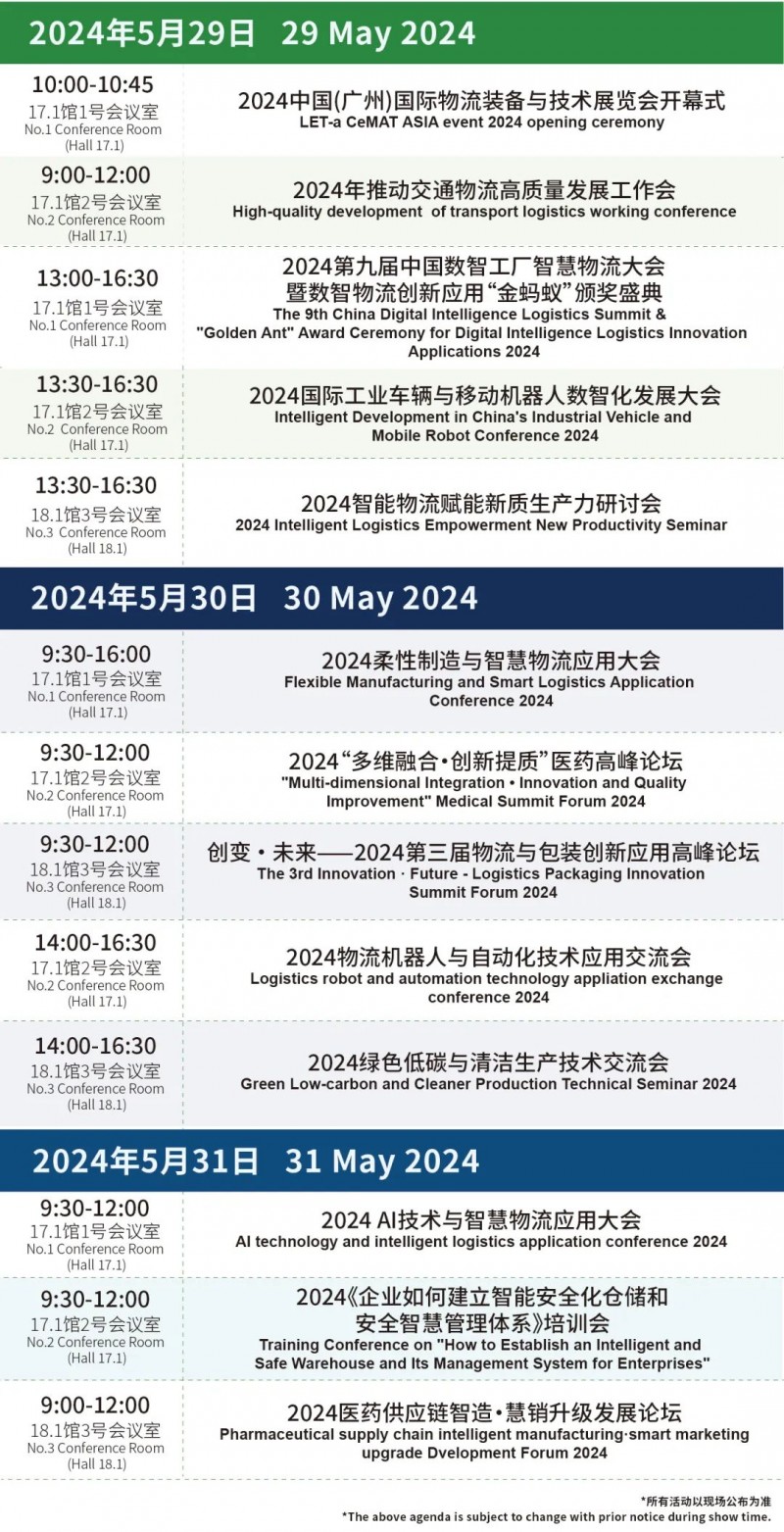 LET 2024將舉辦近20場高質(zhì)量同期活動,與物流大咖、資深人士共同探討2024破“卷”之道,重磅品牌活動——第9屆數(shù)智物流創(chuàng)新應用"金螞蟻"頒獎盛典將于展會首日重磅來襲。三天展期活動主題覆蓋新質(zhì)生產(chǎn)力、柔性制造、AI技術(shù)應用、移動機器人、物流機器人、智能包裝、醫(yī)藥物流、綠色低碳等熱門領域。