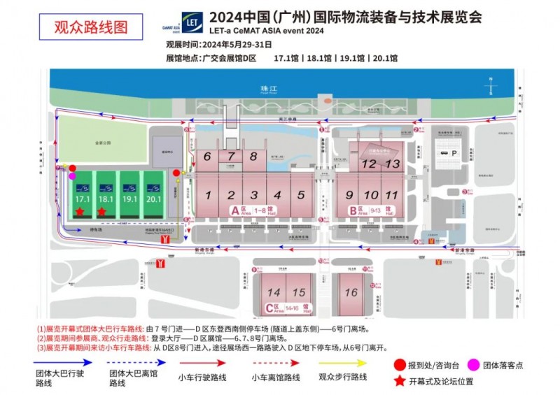 廣州地鐵8號線“新港東站A出口”,步行至廣交會D區(qū)展館6號門進入登錄大廳。