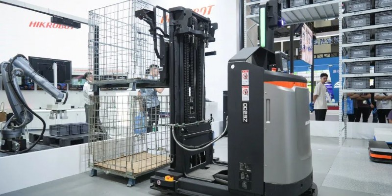 本次展會展出的是??禉C器人全新一代的前移式叉取機器人,前移門架的設計,減少運載空間,提高運載速度。同時具備物料識別功能,可適配各種類型載具。取放精度高,支持物料自動堆疊和拆垛,提高作業效率。