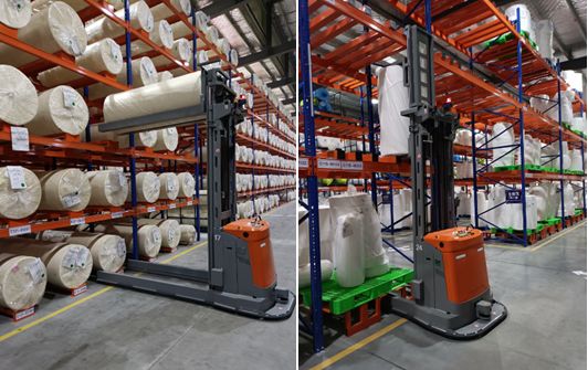 該項目共投入使用59臺今天國際定制化AGV,包括三類38臺激光導航叉車AGV和21臺二維碼導航的潛伏頂升式AGV,59臺AGV共同運行在同一個車間里,協(xié)同工作,互不干擾。AGV系統(tǒng)在不同車型的車輛管理上實現(xiàn)了完美融合,真正做到了智慧物流。AGV應用場景包括原料、蛋糕卷、成品無人化、智能化精準搬運,實現(xiàn)了在高層貨架的上下架自動搬運、平面?zhèn)}庫的自動搬運、以及半成品到使用車間的自動配送。