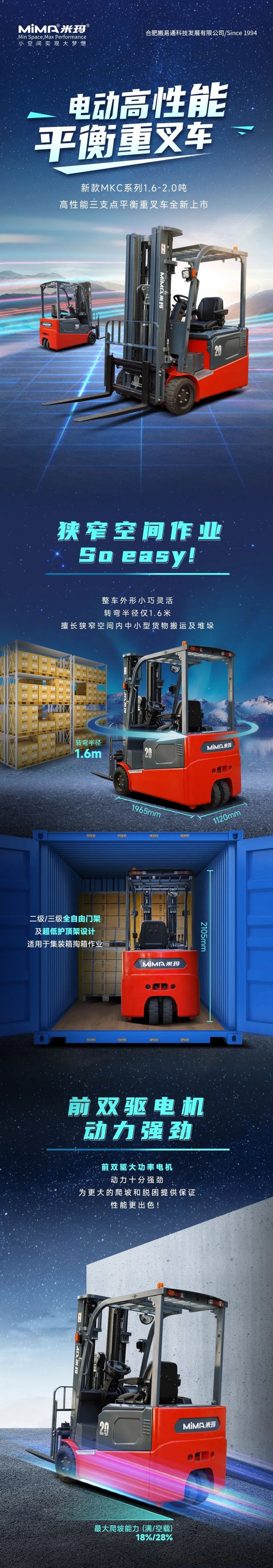 狹窄空間作業(yè)超City! MiMA米瑪1.6-2.0噸高性能三支點(diǎn)平衡重叉車(chē)全新上市!