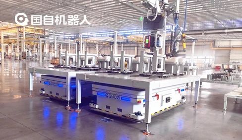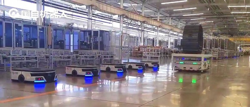 在生產(chǎn)線上,國自為每個生產(chǎn)工位配備移動機器人進行工藝流程運轉。與傳統(tǒng)輸送機相比,移動機器人能更加有效減少人工搬運,大幅提高生產(chǎn)效率,制造過程更安全,也更符合未來智能工廠高度柔性生產(chǎn)需求。