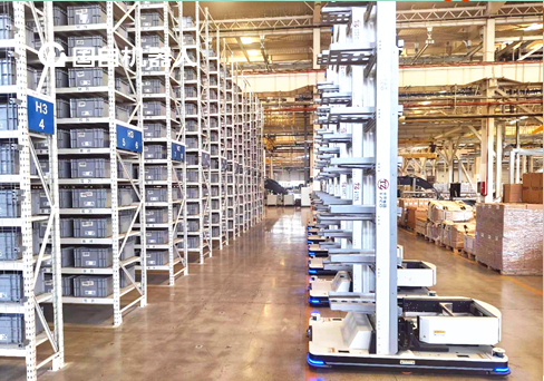 國自機器人采用大件、中件、小件、標準件四種物料分類方式,大、中件采用地堆庫、小件采用立體庫+部分地堆庫、標準件采用立體庫的存儲方案,通過多類型潛伏頂升式移動機器人ANTS、多層料箱揀選機器人PICKING及重載搬運機器人,自動對接料架、托盤、料箱等多種載具。RCS調度系統(tǒng)通過算法優(yōu)化,實現(xiàn)全場多數(shù)量、多類型AGV互相協(xié)作、統(tǒng)籌調度,用多種叫料方式結合存儲與揀配策略,實現(xiàn)物料智能配送,全面提高全廠物流效率。