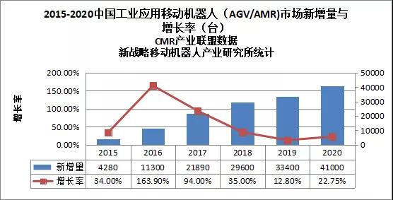 根據(jù)中國(guó)移動(dòng)機(jī)器人(AGV)產(chǎn)業(yè)聯(lián)盟、新戰(zhàn)略移動(dòng)機(jī)器人產(chǎn)業(yè)研究所的調(diào)研,2020年度中國(guó)市場(chǎng)新增工業(yè)應(yīng)用移動(dòng)機(jī)器人(AGV/AMR)41000臺(tái),較2019年增長(zhǎng)25.7%,市場(chǎng)銷(xiāo)售額達(dá)到76.8億元,同比增長(zhǎng)24.4%。由此可見(jiàn),2020年國(guó)內(nèi)移動(dòng)機(jī)器人行業(yè)盡管受到了疫情的影響,仍然保持了較好的整體增長(zhǎng)態(tài)勢(shì)。