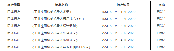 圖表:移動(dòng)機(jī)器人產(chǎn)業(yè)聯(lián)盟制定的6項(xiàng)團(tuán)體標(biāo)準(zhǔn)
