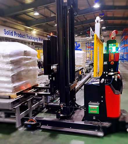 該項目客戶為韓國資本在中國的化工外企,杭叉智能通過整合機械臂、輸送線、穿梭車、打包機以及WMS等軟硬件,結(jié)合自身新款堆垛前移車進行項目規(guī)劃,充分發(fā)揮車輛小巧靈活,對于空間需求進一步縮小的優(yōu)勢,配以鋰電快充大容量的特點以及5G通訊技術的巨大優(yōu)勢,因地制宜,在較短的時間內(nèi)完成實施并將項目投入使用,完全替代了原先人工車的作業(yè)模式,達到了機器換人的目的,實現(xiàn)整體物流智能化。