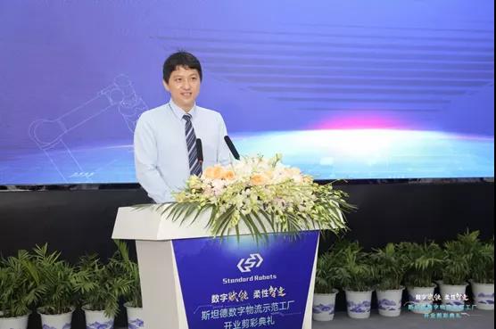 昆山市人大常委會(huì)主任張?jiān)铝帧⒗ド绞腥嗣裾笔虚L(zhǎng)張建成、哈爾濱工業(yè)大學(xué)副校長(zhǎng)張文叢、陸家鎮(zhèn)黨委書記方勇、陸家鎮(zhèn)黨委副書記/鎮(zhèn)長(zhǎng)錢璁和斯坦德機(jī)器人總經(jīng)理王永錕等眾多領(lǐng)導(dǎo)嘉賓為斯坦德數(shù)字物流示范工廠開業(yè)剪彩,市鎮(zhèn)領(lǐng)導(dǎo)與斯坦德機(jī)器人相關(guān)負(fù)責(zé)人共同為斯坦德機(jī)器人安全標(biāo)準(zhǔn)測(cè)試中心揭幕,并共同參觀了斯坦德數(shù)字物流示范工廠。