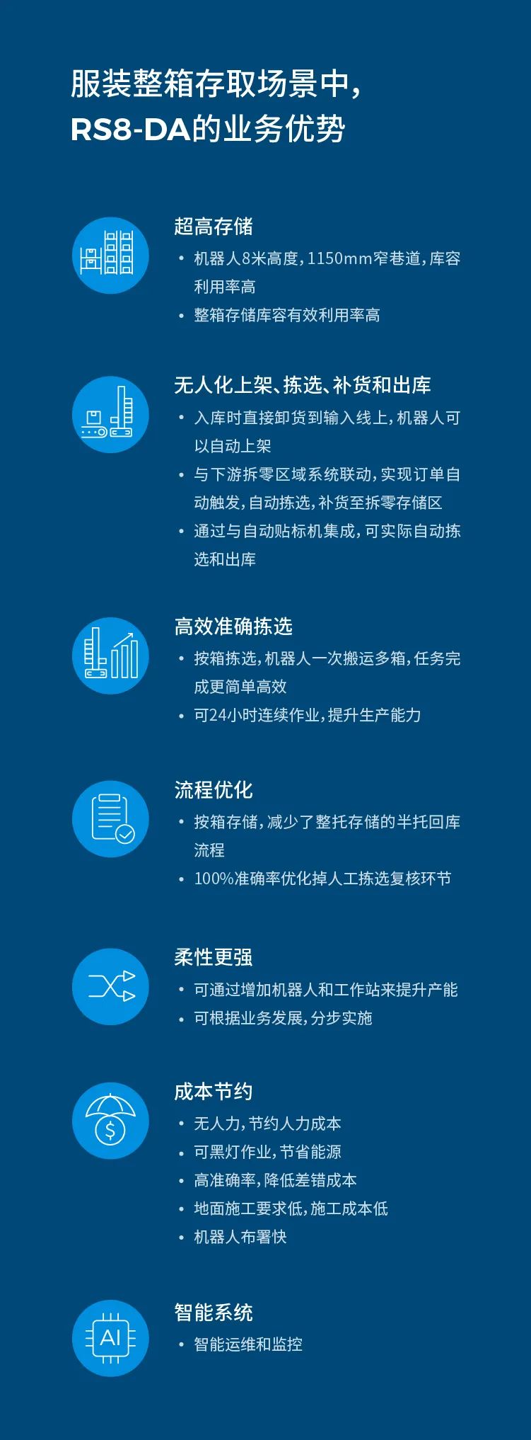 服裝整箱存取場(chǎng)景中,RS8-DA的業(yè)務(wù)優(yōu)勢(shì):整箱全流程無(wú)人上架,揀選和出庫(kù)