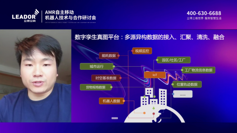 立得空間智慧城市事業(yè)部技術總監(jiān)黃杰詳細介紹了“三維高精地圖+機器人”技術架構。他提到,立得空間研發(fā)的“真圖“數(shù)字孿生時空數(shù)據(jù)服務平臺”基于實景三維、高精地圖、物聯(lián)網(wǎng)、仿真、AI、空間網(wǎng)格碼等關鍵技術,可接入海量多維數(shù)據(jù)、進行匯聚、清洗、融合、管理及可視化,快速構建數(shù)字孿生時空大數(shù)據(jù)底座。
