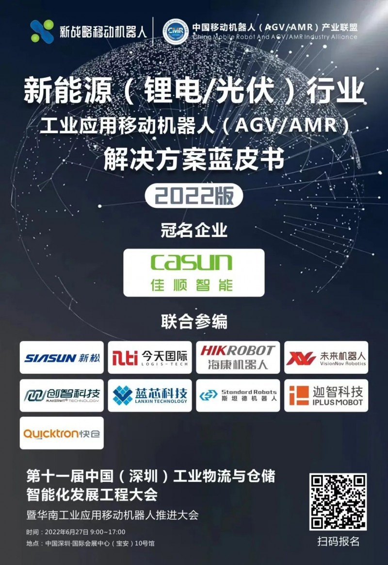 為了更好地解讀新能源行業(yè)移動(dòng)機(jī)器人應(yīng)用現(xiàn)狀及趨勢,6月27日,由中國移動(dòng)機(jī)器人(AGV/AMR)產(chǎn)業(yè)聯(lián)盟、新戰(zhàn)略移動(dòng)機(jī)器人產(chǎn)業(yè)研究所主編的《新能源行業(yè)用移動(dòng)機(jī)器人(AGV/AMR)解決方案藍(lán)皮書(2022版)》將在“中國(深圳)工業(yè)物流與倉儲(chǔ)智能化發(fā)展工程大會(huì)暨華南工業(yè)應(yīng)用移動(dòng)機(jī)器人推進(jìn)大會(huì)”上正式發(fā)布!