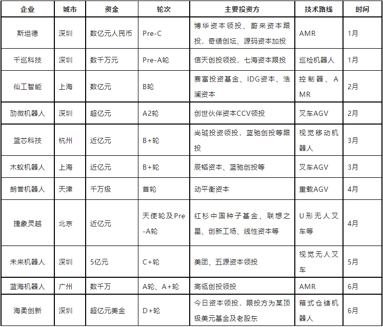從資金投入來看,大部分企業(yè)融資金額都在億元級(jí)以上,其中,海柔創(chuàng)新與未來機(jī)器人兩家企業(yè)在上半年拿到了行業(yè)最多的融資。